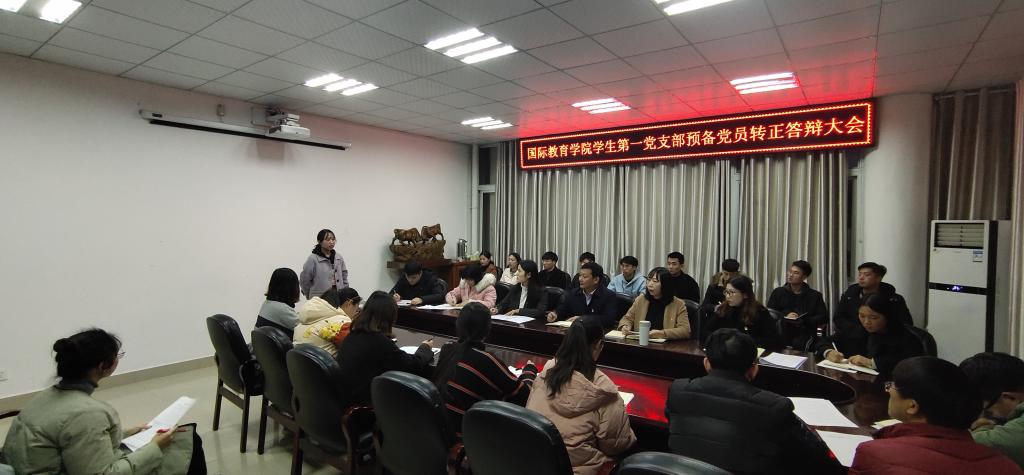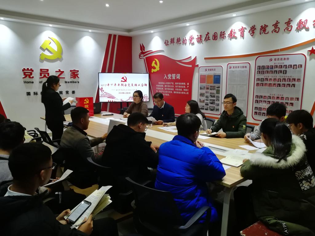 为进一步加强基层党支部的组织力,切实发挥学生党支部教育党员、管理党员、监督党员的工作职责,推进高校学生党建工作组织化、制度化、具体化,12月3日,beat365官方网站中外文化交流协会党支部、学生第一党支部以及学生第二党支部先后召开预备党员转正答辩大会。学院党委书记张震、副院长何英干、党委副书记姚新春参加并指导联系党支部预备党员转正答辩工作。