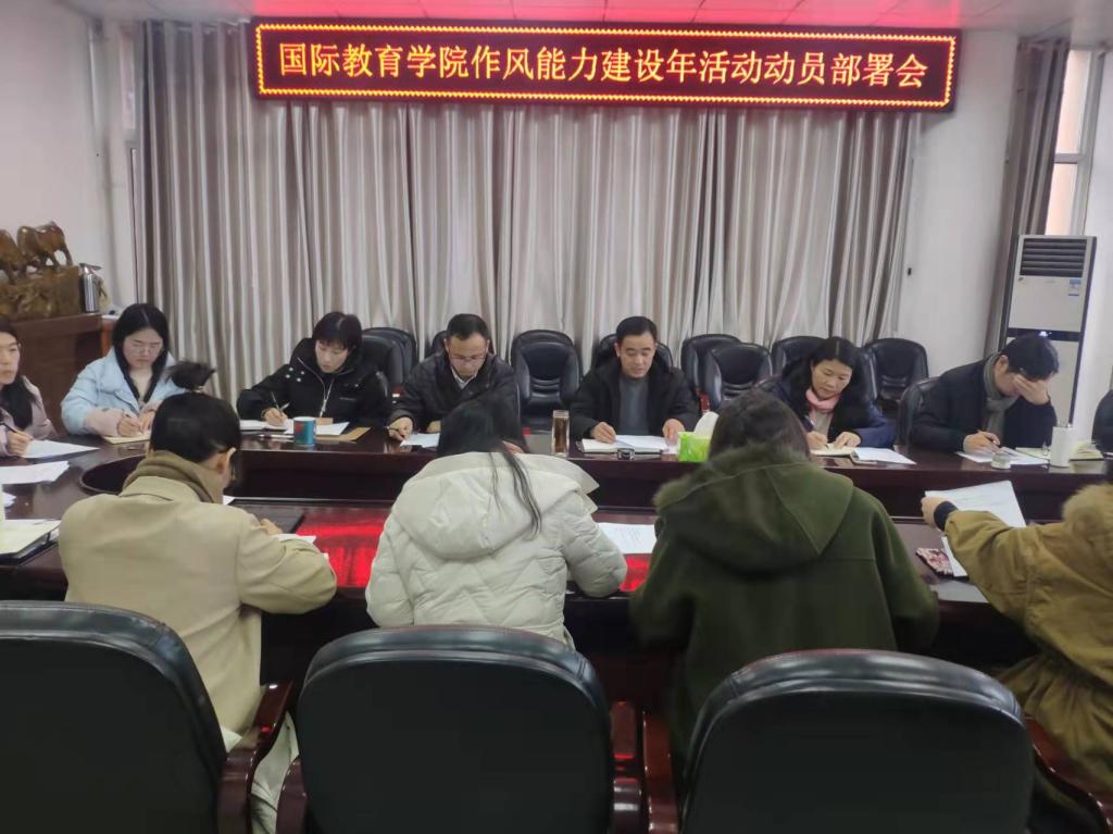 李舟就落实好学院“能力作风建设年”活动做出具体安排部署。他强调,一要加强学习。深入理解“能力作风建设年”的任务要求,深刻认识开展作风能力建设的重大意义,深度把握中国共产党加强作风建设的历史进程和基本经验,认真学习领会习近平总书记关于推进作风建设的重要讲话精神,学习领会习近平总书记关于坚持不懈抓好作风建设的重要论述。党员领导干部要在思想上高度重视,在行动上狠抓落实,把“能力作风建设年”活动作为当前的首要政治任务,严格按照三个阶段的工作部署,高站位推动、高标准开展、高质量落实。二要把握要点。党的作风建设的核心是保持党同人民群众的血肉联系,要牢固树立全新全意为人民服务的宗旨意识和公仆意识,贯彻落实以人民为中心的工作理念,大兴调查研究之风,在提升服务师生能力上下功夫。全院党员干部要深入检视为了谁、依靠谁、我是谁”的思想认识是否深刻、“权为民所用、情为民所系、利为民所谋”、“铁肩担道义”的为民情是否牢固、在想师生之所想,急师生之所急上下的功夫是否足够、摸师生民生问题,排难解忧聚焦的是否精准,采取的措施是否到位,俯下身子,躬身一线,真正把师生需求摸透彻,聚力解决师生反映强烈的现实问题。三要务求实效。要把开展能力作风建设同学院2022年度重点工作相结合,同推动事业发展相促进,以此次活动为契机,大兴务实进取之风,在提升破解中外合作办学事业发展难题的能力上下功夫。开展“守初心、强能力、正作风”主题教育和“三个一”主题实践活动,即体验一次红色历史、办一件实事、打通一个工作堵点。他要求全院党员干部要清醒认识世界百年未有之大变局的新形势、日趋复杂的国际环境和常态化疫情防控给中外合作办学带来的冲击和影响,进一步分析研判中外合作办学事业发展面临的新挑战、出现的新情况、产生的新矛盾,对如何继续加快和扩大新时代教育对外开放,如何保持与外方合作院校交流合作,如何一步加强项目内涵建设和扩大项目的辐射带动作用,如何进一步提高项目学生的国际化意识和出国留学愿望等问题进行深入思考、系统谋划,采取有效措施破解制约中外合作办学健康可持续发展的难点、堵点。