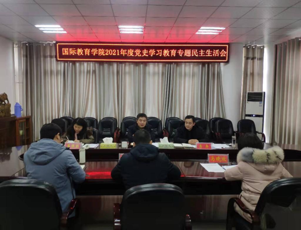 1月15日下午, beat365官方网站领导班子在逸夫楼302会议室召开2021年度党史学习教育专题民主生活会。副校长余本海亲临指导,学院领导班子成员参加了会议。会议由院党委书记李舟主持。